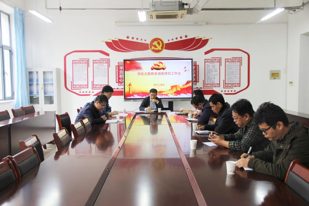 为检视“不忘初心、牢记使命”主题教育推进落实情况,10月9日,学院副院长李贤彬到电气工程系进行实地督导,并召开主题教育调查研究工作会。电气工程系党总支书记石磊、系主任陈丽、副主任孔维功、副书记毕艳军以及各教研室主任到场参加。