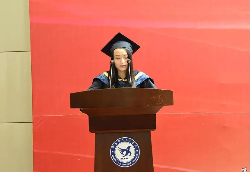 毕业典礼在雄壮的国歌声中拉开帷幕。学院党委书记刘彩琴发表致辞。刘书记首先向圆满完成学业、即将开启人生新篇章的本科毕业生表示了祝贺。她提到,学院十分重视本科生的教育与培养,时刻都在关注着同学们的成长,努力为同学们营造良好的环境。四年来,累计100余人次获得国家各级各类奖学金资助;47人次获得“优秀班干部”、“三好学生”等荣誉称号;30余名同学在国家和省级各类竞赛中获得佳绩;13人考上研究生深造。她希望毕业生们勇于承担自身责任,以实际行动反哺回报家人和社会;敢于拼搏奋斗,让行动与理想并肩而行;把生活掌握在手上,悉心对待日常。