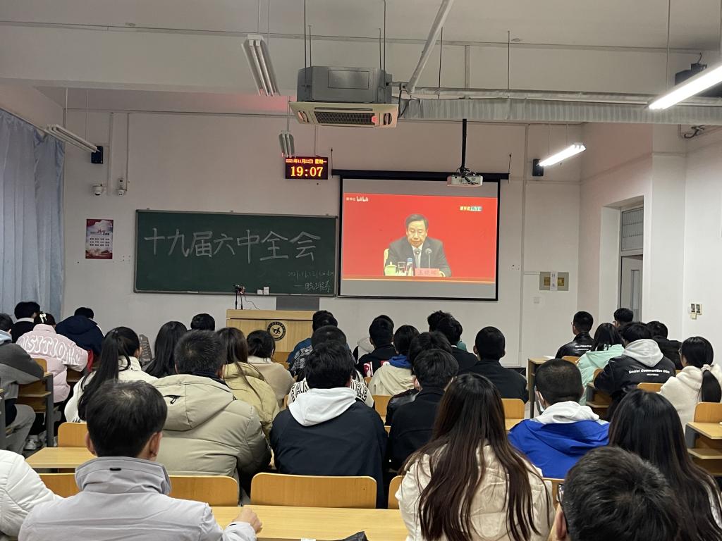 11月22日晚19时,电气工程系学生党支部在C区教学楼多媒体教室组织学习党的十九届六中全会精神。我系19级在校入党积极分子及20、21级团支书参加学习。