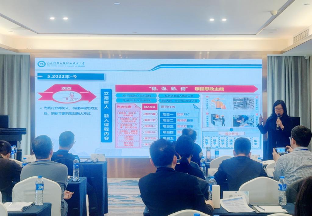 会议伊始,杭州科技职业技术学院金文兵院长详细介绍了工业互联网应用专业教学资源库建设的背景和意义。随后与会教师团队围绕承担课程内容的选择与更新、教学方法的创新、教材的设计思路、主要编写内容等方面进行了展示汇报。陈丽在会上对《PLC控制系统编程与实现》这一门国家精品在线课程的建设过程、资源整理、知识技能树的梳理、课程思政融入以及后续规划,进行了展示分享,获得与会人员的一致好评。