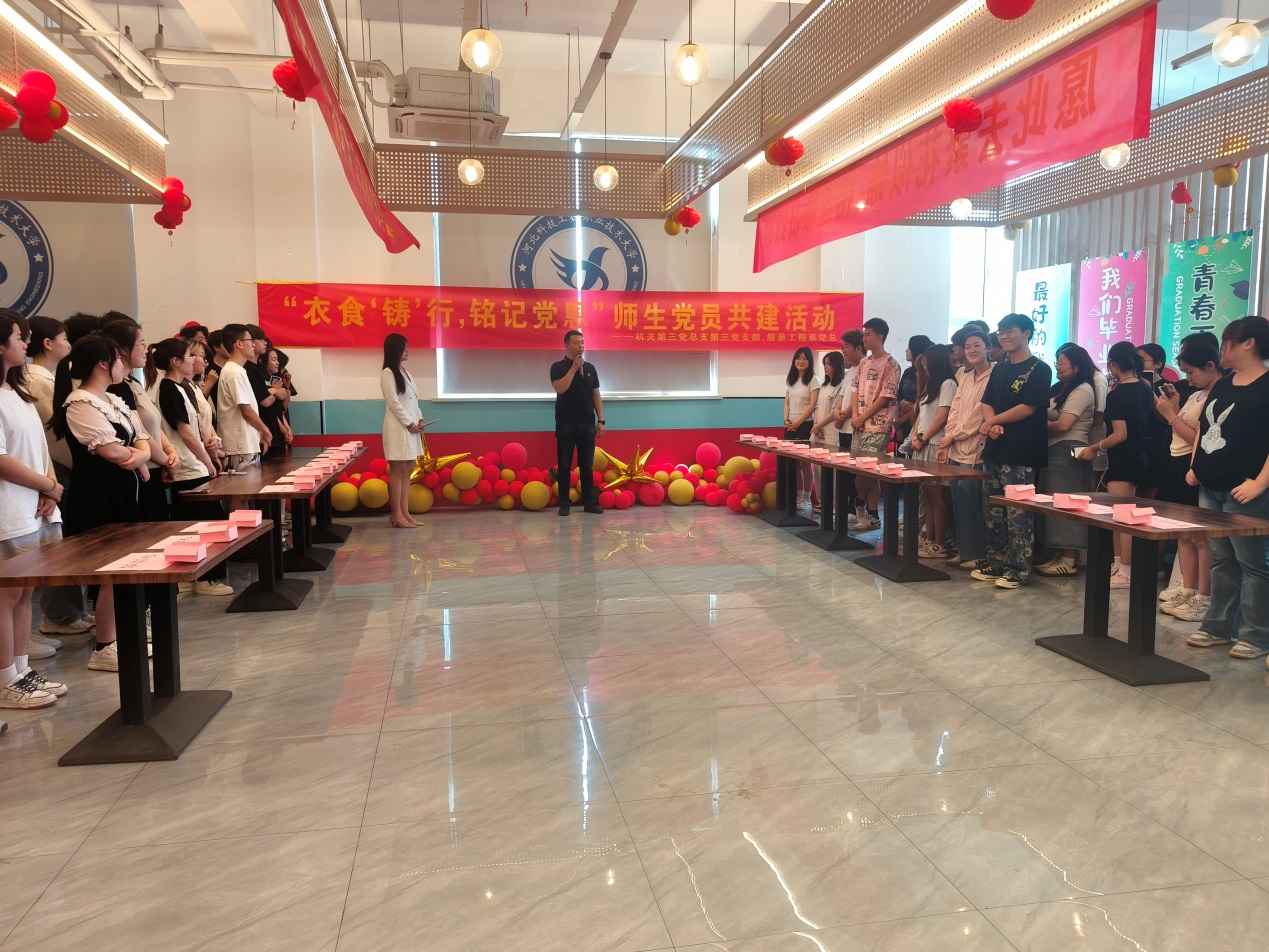 为加强各党支部之间的交流与合作,立足各自支部优势资源,推动协同育人。6月23日,我系党总支联合机关第三党总支第三党支部开展“衣食‘铸’行,铭记党恩”师生党员共建活动。本次活动以开展劳动课堂——厨艺比拼为主,发掘劳动教育实践元素。副校长赵建光、副校长刘卫红、服装工程系党总支书记、机关第三党总支第三党支部书记及师生代表到学校餐厅、后厨沉浸式体验活动。