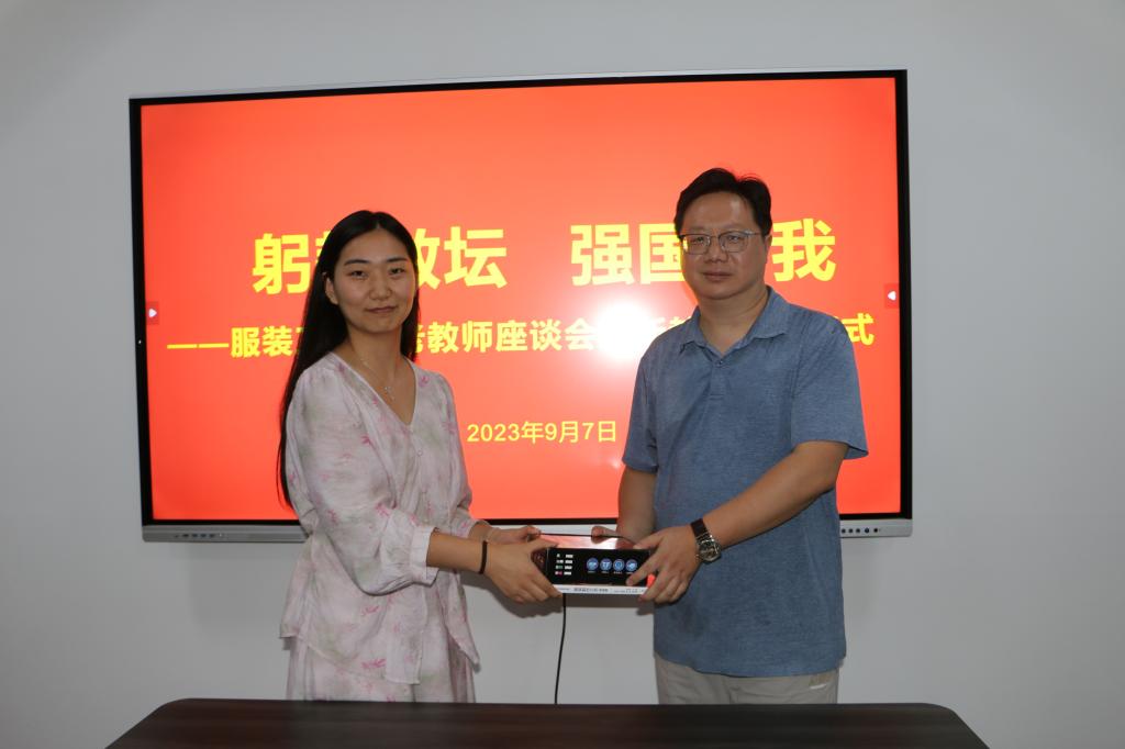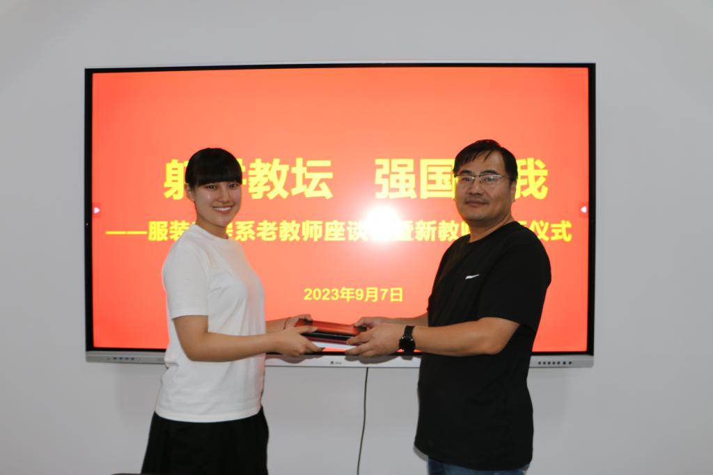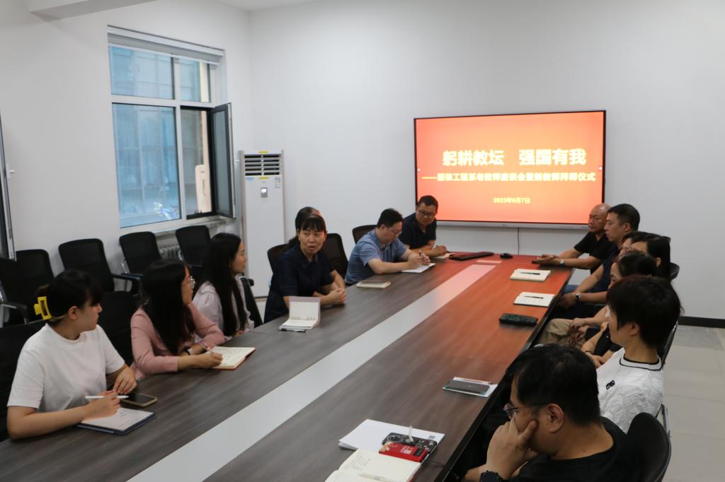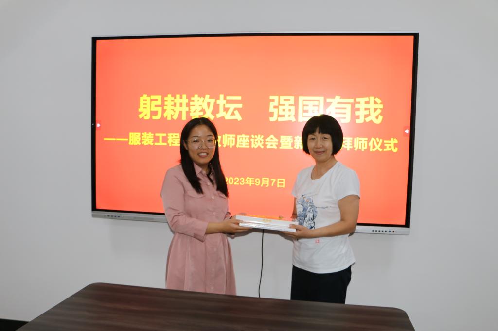 在我国第39个教师节来临之际,在学校党委的部署与指导下,2023年9月7日,服装工程系围绕“躬耕教坛,强国有我”的主题,深入学习贯彻习近平总书记在中共中央政治局第五次集体学习和在北京育英学校考察时的重要讲话精神,并开展老教师座谈会暨新教师拜师仪式。系领导班子及部分老教师、2023年新进教师参加座谈。