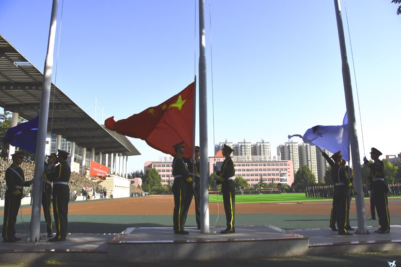 典礼在庄严的国歌声中拉开帷幕,鲜艳的五星红旗在两面校旗的护卫下,随着雄壮的国歌声冉冉升起,高高飘扬在校园上空。升旗仪式结束后,在院国旗护卫队的带领下,2017级新生军训分列式汇报表演正式开始,各系方队在雄壮的军乐声中依次经过主席台,接受学院领导的检阅,5000余名军训新生队列整齐,步伐一致,口号响亮,意气风发,展现出良好的军人素养、严谨的思想作风、奋发向上的精神风貌和朝气蓬勃的青春气息。