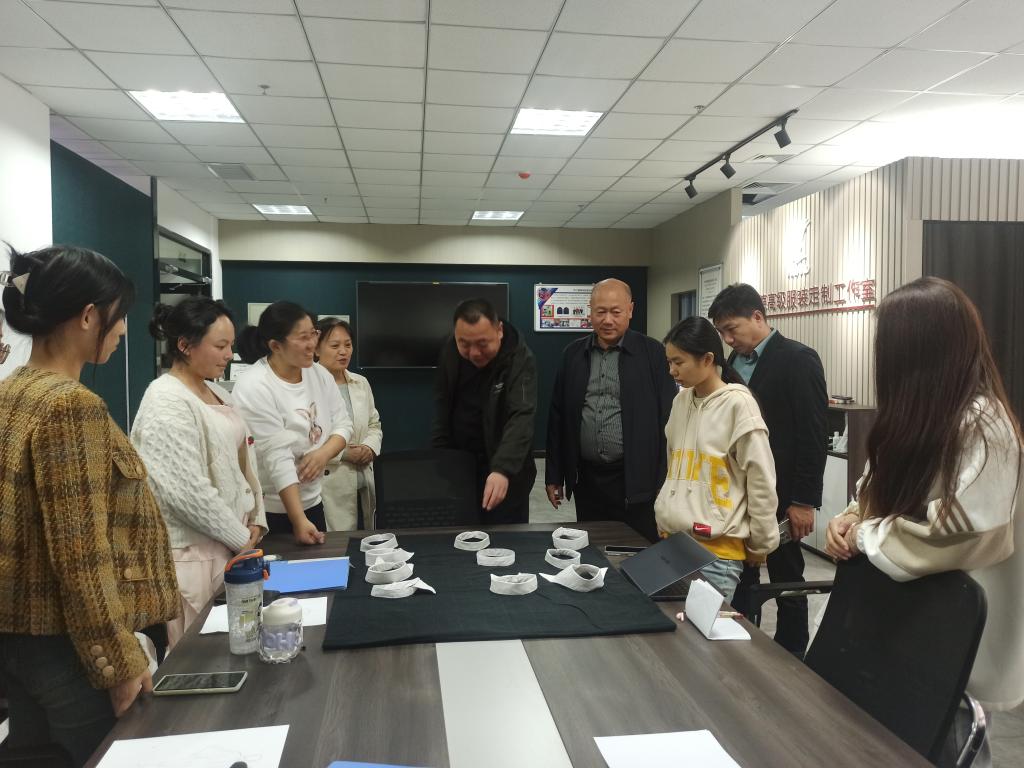 范树林带领新兴际华企业、北京领袖乾坤企业一行参观了创意设计产业协同创新中心18个服装专业工作室,并详细介绍了系部整体情况、各工作室功能与运行管理模式和服装职业本科专业研究方向,并着重介绍了军旅户外装备研究工作室对接军民融合、军教结合的一些构思和做法。交流洽谈会上,双方就开展工作室研发任务对接、高技能人才培养、军教深度融合以及纺织服装、制鞋、装具检测等相关专业知识的培训工作进行了深入交流。