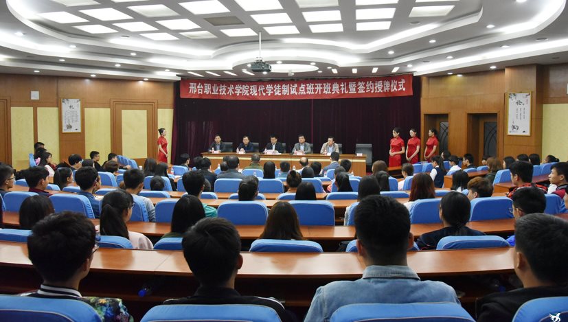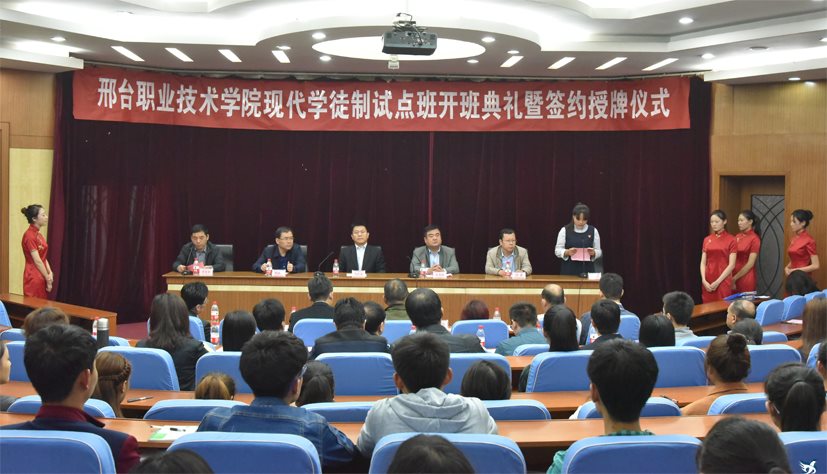 10月18日,我院在学术报告厅隆重举行了服装设计与工艺专业、应用化工技术专业现代学徒制试点班开班典礼。学院马东霄院长、李贤彬副院长、际华三五〇二职业装有限公司党委张凤林书记、河北中煤旭阳焦化有限公司李庆华总经理等校企领导,学院教务处、招就处、学生处、服装及资环等系部负责人,任课教师,企业管理人员,服装设计与工艺、应用化工技术专业现代学徒制试点班全体学生及学院部分学生代表参加了典礼。