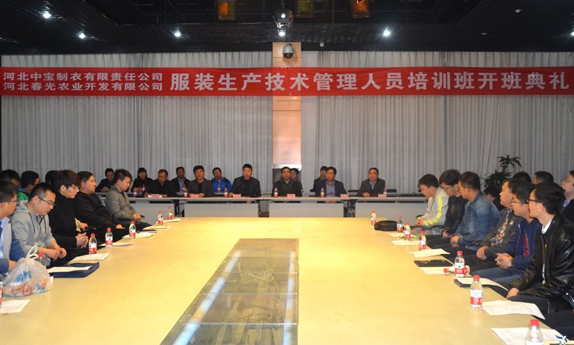 4月6日,服装工程系同河北中宝制衣有限责任公司和河北春光农业开发有限公司合作举办了今年首期服装生产技术管理人员培训班开班典礼。学院李贤彬副院长,河北中宝制衣有限责任公司高文博总经理、杜志辉副总经理、河北春光农业开发有限公司吴国彬总经理参加典礼并讲话。
