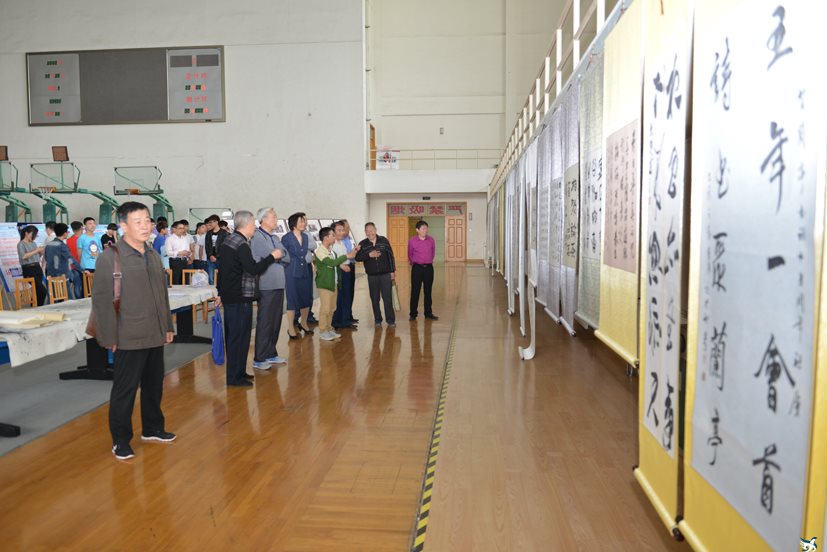 来到学院体育馆,刘彩琴副书记首先带领大家观看了我院大学生书法作品展,社区书协的先生们对我院学生书法作品一一作了细致点评,并亲自指导如何布局、如何做到提笔有神,同学们认真听取先生们的讲解并不时提问,现场交流和谐而又默契。来到科技作品展区和书画作品展区,参观人员对于我院参展作品和浓厚的校园文化气息兴致浓浓,赞不绝口。在接下来的书法交流活动中,先生们不吝墨宝,纷纷上前挥毫泼墨,并在书写过程中给在场围观的爱好者们耐心讲授书法常识和书写技巧。在两个小时的活动中,社区书协的先生们和兰亭书社的书法爱好者们共同写下了对学院的祝福、对学生的鼓励以及对美好生活的憧憬,整场交流联谊活动书香四溢、气氛热烈。