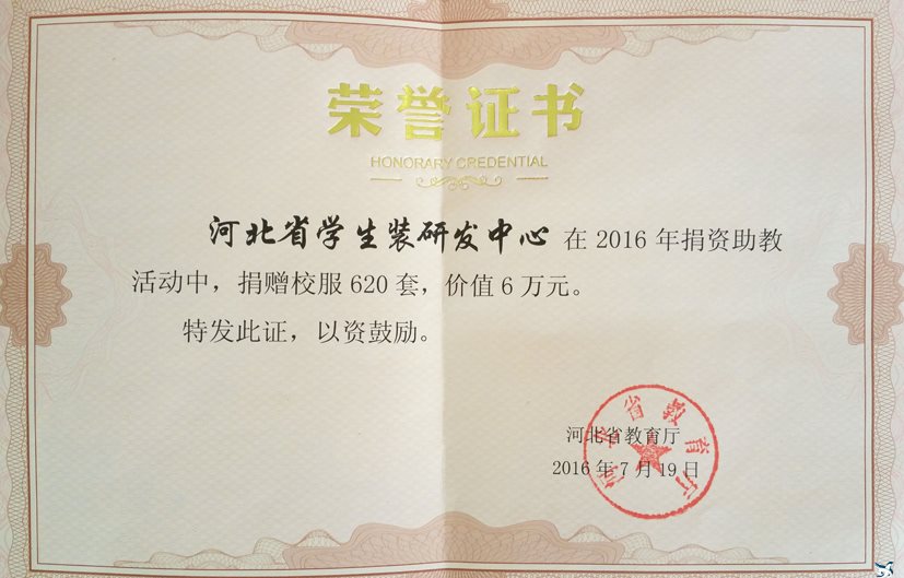 本次捐资助教活动,是行业企业回报社会、关爱学生、支持教育事业的有力举措,也代表了我省学生装改革工作的有效推进。捐赠仪式结束后,河北省教育厅向河北省学生装研发中心及捐赠企业颁发了捐资助教荣誉证书。通过此次活动,彰显了服装工程系在参与我省学生装改革、服务区域经济发展中所做的贡献。