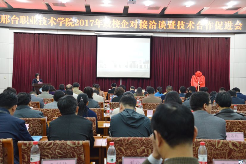 为进一步深化产教融合,促进政校企合作,加快人才培养与技术服务交流,助推区域经济发展,我院于10月24日成功举办了2017年政校企对接洽谈暨技术合作促进会。邢台市科技局、工信局、科协、发改委、教育局、工商联、人社局等政府部门领导,各区县相关政府部门负责人,以及60余家企业负责人共170多人应邀参会。院长马东霄、党委副书记刘彩琴、副院长李贤彬等学院领导出席会议,副院长刘卫红主持会议。