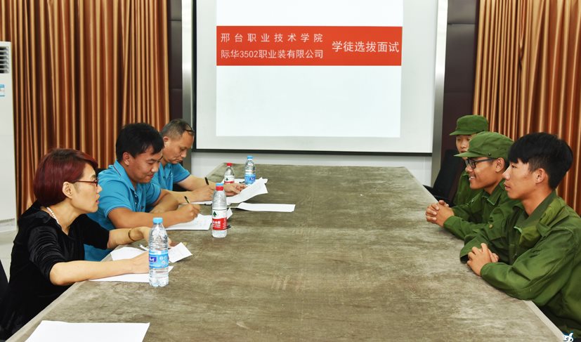 9月13日,首届服装设计与工艺专业现代学徒制试点班进行了学徒选拔面试。现代学徒制试点合作企业——际华3502职业装有限公司人力资源部邵菊经理一行针对16级服装设计与工艺专业新生逐一进行了面试沟通,最终在40名报名学生中选拔出25名同学进入现代学徒制试点班。
