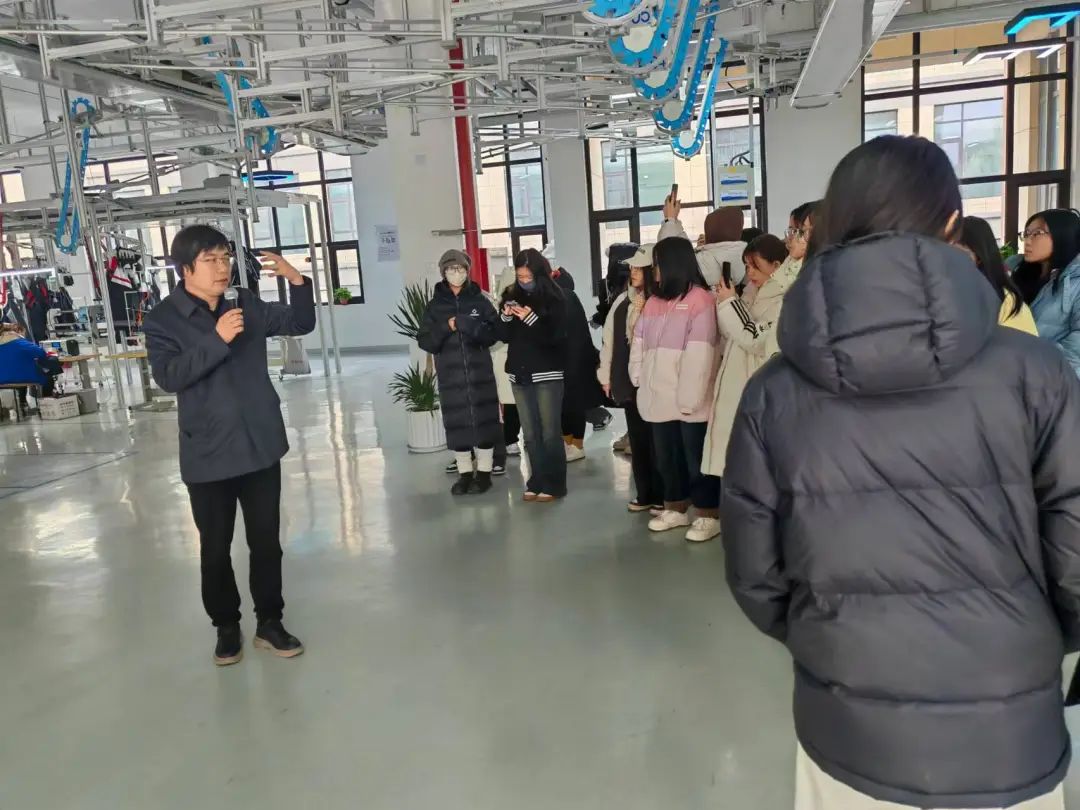 服装工程系为提升人才培养质量,拓展学生视野,同保定阜平县经济开发区开展校企对接合作。2024年11月26日,由服装工程系辛东升主任带队,10名骨干教师、2名援疆教师及服装本2403、服装本2404班80余名学生,赴保定阜平春风树服饰有限公司开展入门项目实习和企业走访活动。