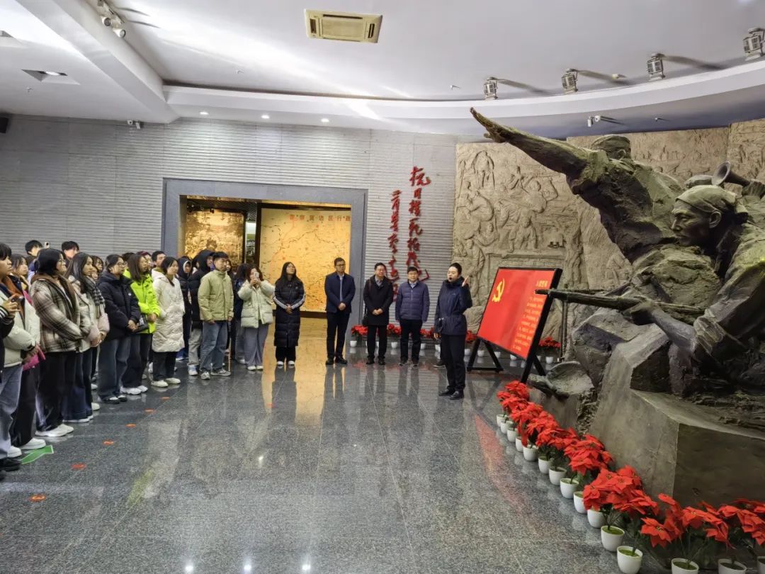 上午春风树服饰有限公司总经理王海宾带领师生参观了晋察冀边区革命纪念馆。在晋察冀边区革命纪念馆及晋察冀司令部旧址,学生们认真聆听讲解员的讲解,通过观看一幅幅珍贵的照片、一件件历史文物,切身感受到了晋察冀根据地军民在抗日战争中书写的壮丽篇章,进行了一次现场版的爱国主义教育。