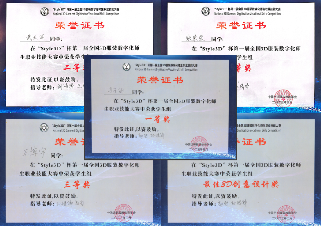(4)第一届全国3D服装数字化师生职业技能大赛一等奖、二等奖、三等奖。