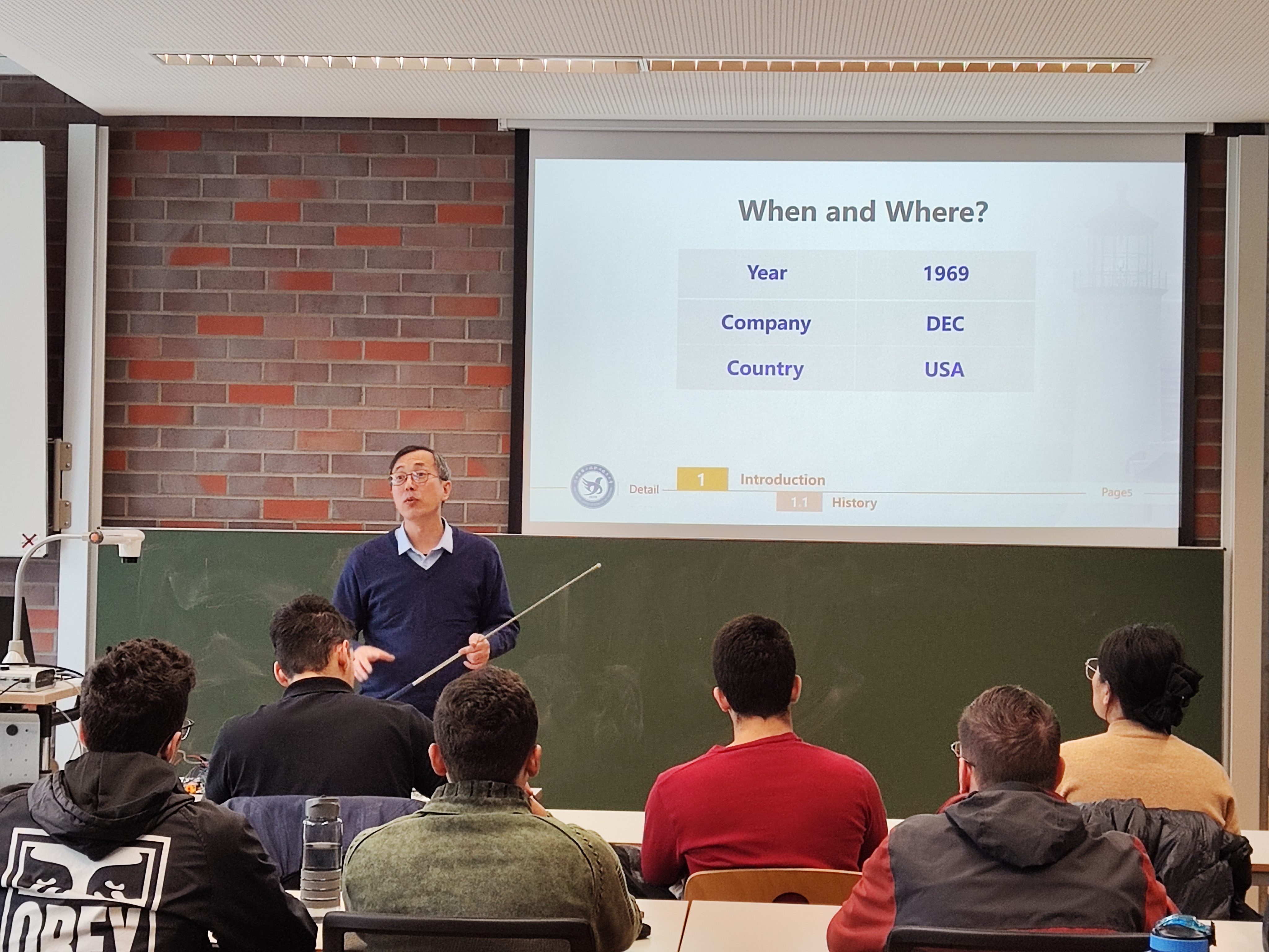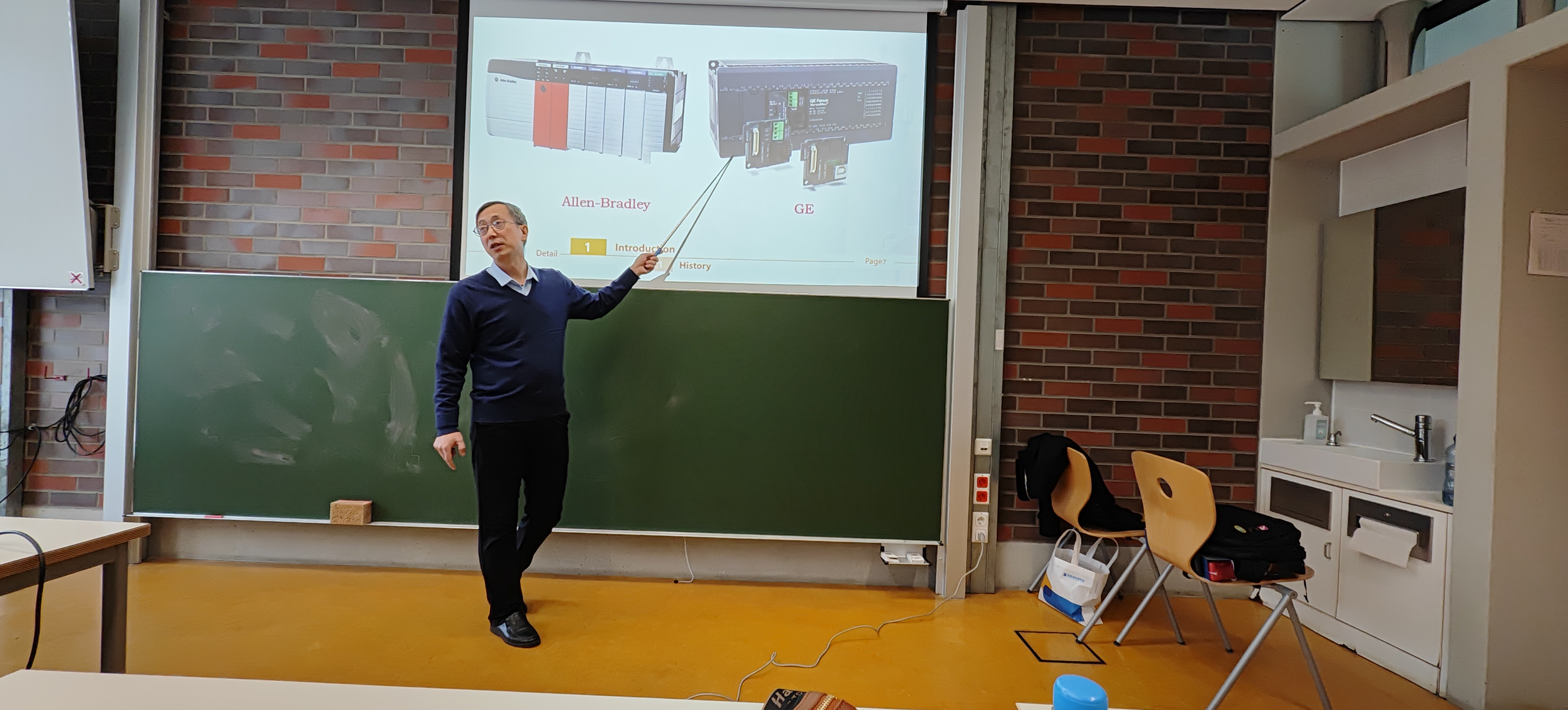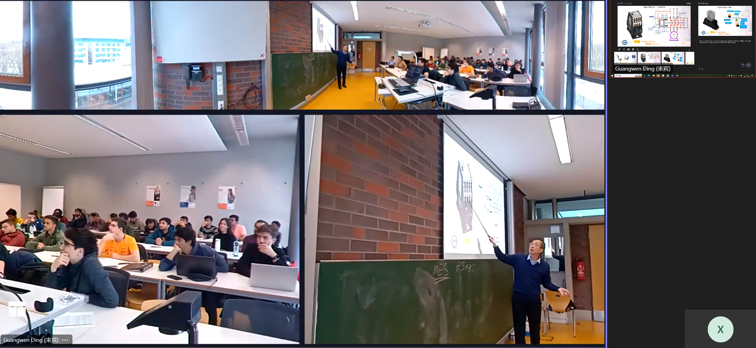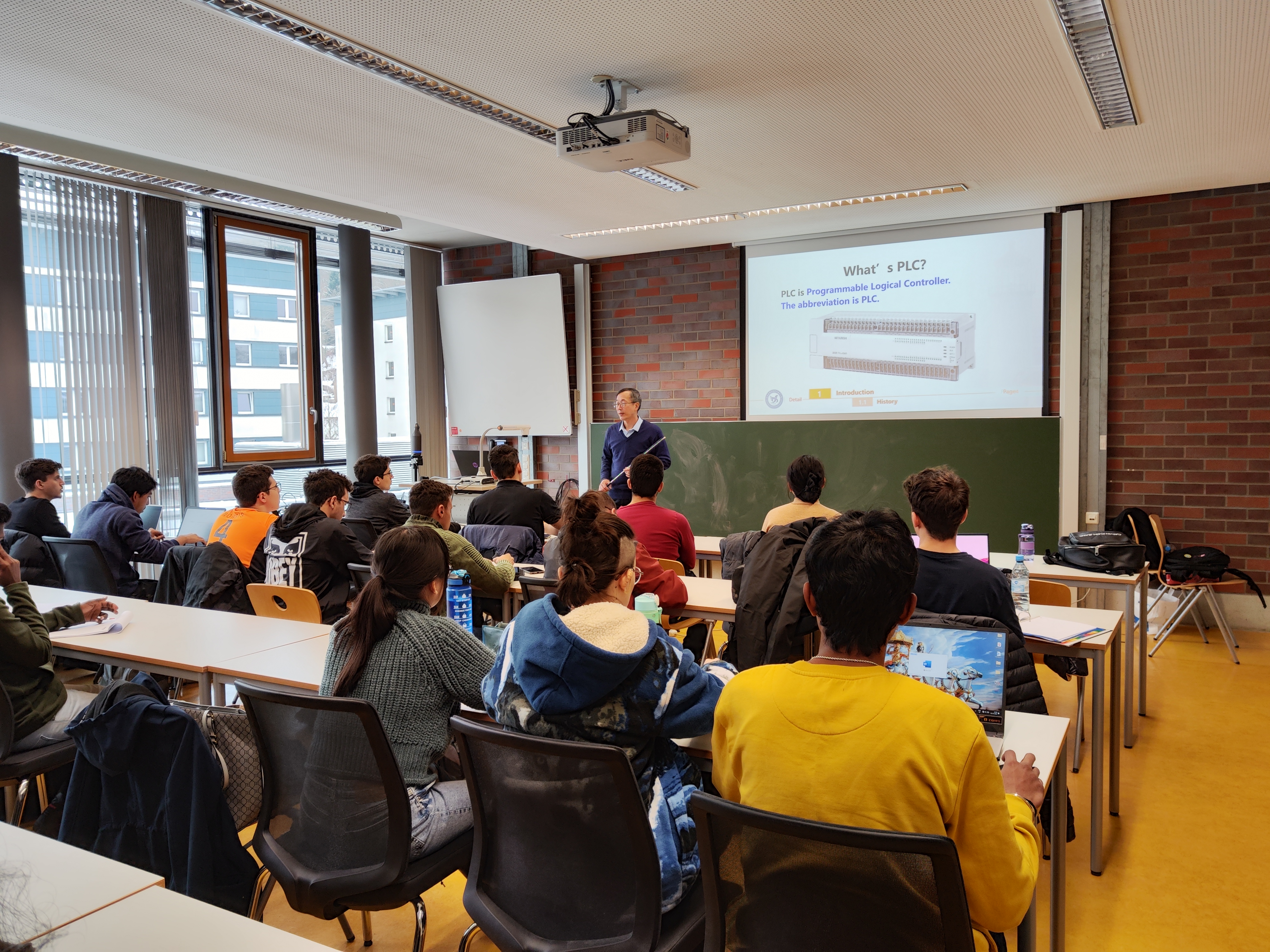 2023年12月4日到12月9日,德国施马卡尔登应用科学大学第十三届国际周如期举办。为扩大国际周的影响,本次国际周依然采用线上线下混合方式进行,同时对beat365师生进行直播。我系丁广文老师再次收到德方邀请,赴德国施马卡尔登应用科学大学参加了本次国际周活动,并于当地时间12月5日下午12点-15点半在H教学楼211教室进行了3个小时的专题授课,主题为PLC控制。这是丁老师第二次来到现场为学生授课。本次授课采用微软的Teams进行全程直播,方便beat365师生进行学习。