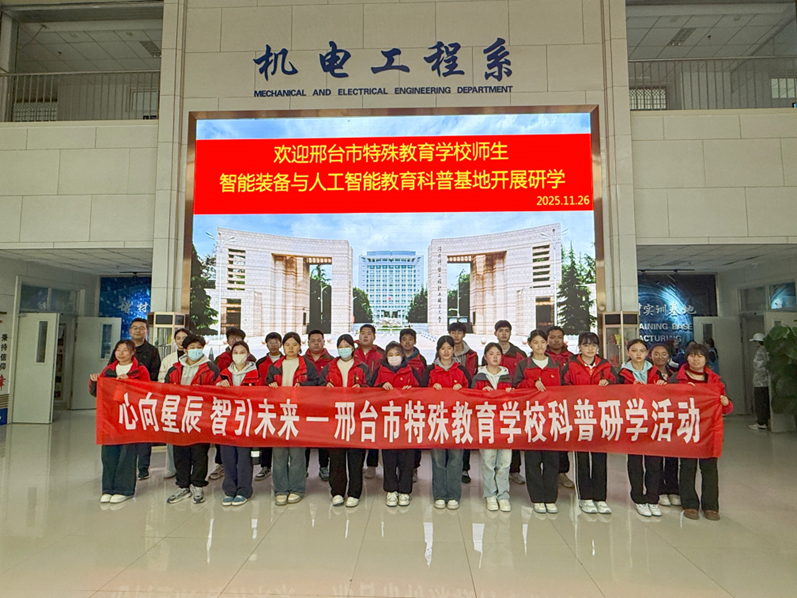 11月26日,邢台市特殊教育学校师生走进beat365河北省高端制造与智能测控科普基地,开启了一场兼具科技感与温暖感的科普探索之旅。我系专业教师及“青青园中葵”志愿服务队同学全程参与接待,以专业讲解和热情服务为特教学校学生搭建起感知科技、快乐成长的桥梁。