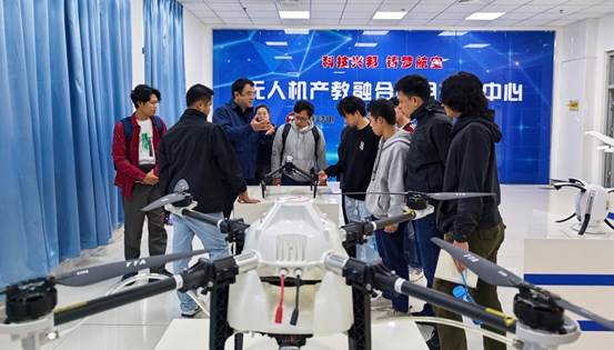 无人机展厅里,基地老师给留学生们展示了测绘、农林植保、物流配送等各种用途的无人机系列,让他们了解无人机的工作原理、核心构造、应用领域等,更看到了科技对生活的改变。