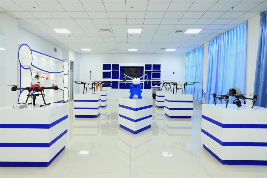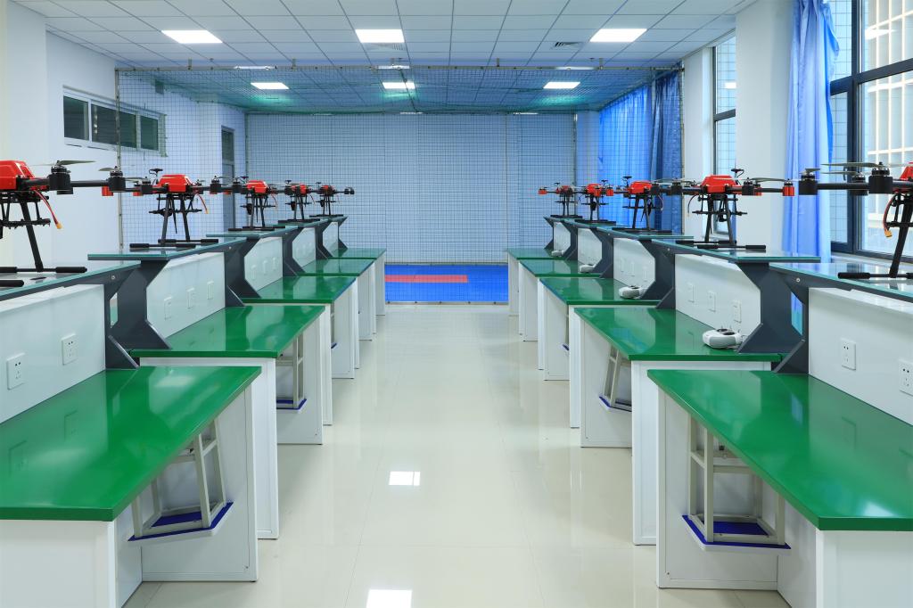 中心目前包含五个模块,分别为:无人机机型展示与认知模块;无人机室内模拟飞行模块;无人机拆装实训模块;无人机室外飞行训练模块;无人机的维修调试与项目对接模块。同时开设了无人机室内飞行模拟实训、无人机室内飞行VR模拟实训、多旋翼及固定翼无人机拆装实训、多旋翼无人机室外飞行训练等实训项目。与国内的部分无人机专业科研院所和一些大中型国有无人机企业建立了合作关系,在专业技术方面积累了一定的优势。在应用设备方面,拥有从植保无人机、视频拍摄无人机、大重量多轴无人机任务平台、无人直升机、长航时固定翼航测无人机到垂直起降无人机等全系列的飞行训练平台;拥有无人机可见光吊舱、双光吊舱、多光谱吊舱、倾斜摄影吊舱和激光雷达吊舱等航测遥感设备,并具备了一定的遥感数据处理能力。依托以上设备形成了,从无人机的装配到试飞调试,到后期的数据处理建模成图的一条龙式的教学实训体系。
