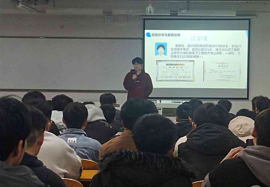 为帮助我系学生做好未来的学习规划,了解更多专接本信息,机电工程系于2023年11月14日在机电楼521教室举办专接本经验交流会,参加本次交流会的有史海涛老师、四位专接本成功学生代表以及部分学生。