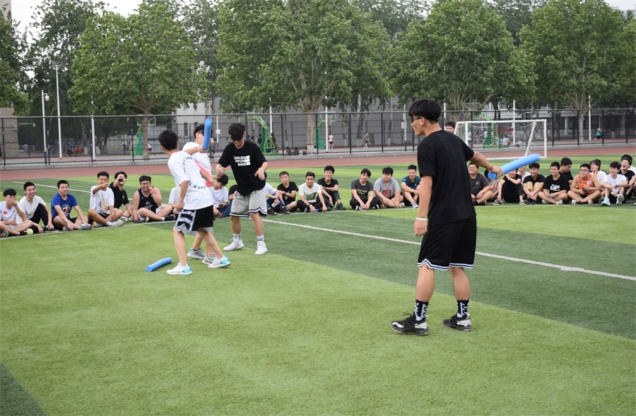 下午3点,同学们在操场集合完毕。首先,由主持人介绍本次运动会的比赛项目和比赛规则。本次比赛有“保龄球”“呼啦圈接力跑”“摸石过河”“听声辨位”四个项目。比赛期间,最受同学们欢迎的项目是“摸石过河”,每组队伍都努力练习成员间的配合,随着嘹亮的哨声响起,各参赛队伍都以最默契的配合跃向终点,其他同学也纷纷为参赛选手加油鼓劲,比赛氛围十分激烈。尽管烈日炎炎,但依旧不影响同学们将饱满的热情投入到比赛当中。比赛过程中,参赛选手个个斗志昂扬、奋力拼搏,大家团结协作、争分夺秒地完成比赛。最后,综合四个项目成绩,机制2002班获得本次运动会的第一名。至此,本次运动会圆满结束。