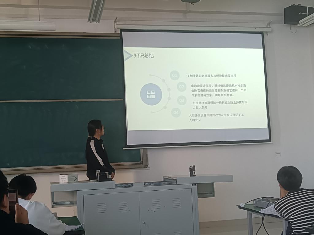 到达实习地点之后,实习指导老师首先给同学们讲解了实习的安全规范和注意事项,并再三告诫同学们要做到“三不伤害”,即不伤害自己、不伤害他人、不被他人伤害。本次实习先后参观了襄阳中康汽车零部件有限公司、襄阳光瑞汽车零部件有限公司、襄阳中基创展智能科技有限公司、湖北君庭汽车零部件有限公司、中印南方印刷有限公司、湖北神誉机械制造有限公司、东风旋压技术有限公司、湖北新日电动车有限公司等八家企业。通过企业实习,同学们了解了发动机缸体、缸盖、齿轮、齿轮箱、齿轮轴、飞轮壳等典型机械零部件的生产工艺和过程、生产设备;对产品总装、冲压设备和工艺、皮带轮旋压件生产设备和工艺、机器人焊接、智能制造印刷设备、智能设备生产及组装调试有了更深刻的认识。在实习的空余时间,企业安排了经验丰富的工程师进行技术培训,同学们通过技术培训进一步提高了自己的知识储备以及专业技能。实习结束后,同学们针对实习内容进行总结,分享了实习的收获与感悟。
