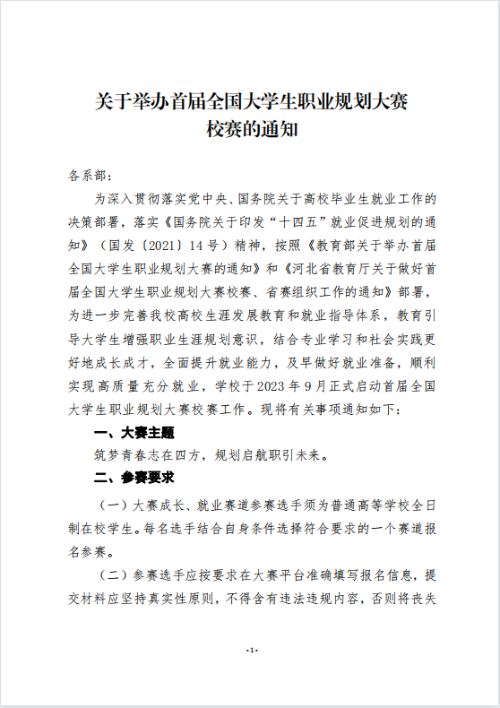 关于举办首届全国大学生职业规划大赛校赛的通知