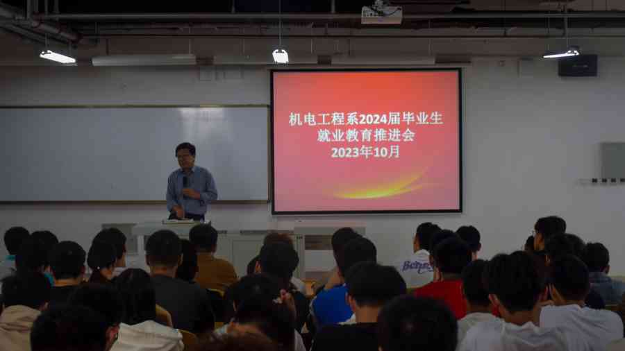 为进一步做好机电工程系2024届毕业生就业指导服务工作,帮助毕业生树立正确就业观念,提升就业积极性、主动性,2023年10月11日,机电工程系在机电楼521教室召开2024届毕业生就业教育推进会,参与本次会议的有马雪芳书记、王亚炜老师、史海涛老师、宋立虎老师以及部分2024届毕业生。
