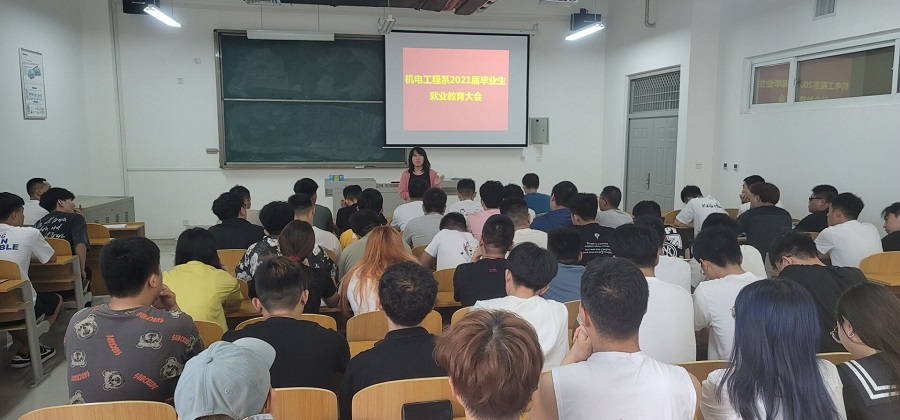 为贯彻学院2021届高校毕业生就业工作精神,推进毕业生顺利落实就业岗位,机电工程系于2021年6月16日召开了2021届毕业生就业教育冲刺大会。就业辅导员闫健娜老师和主管毕业班辅导员陈旭老师主持了此次会议。