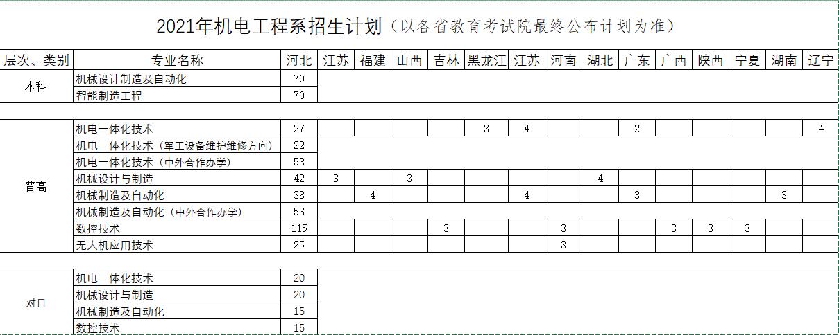 2021年机电工程系招生计划