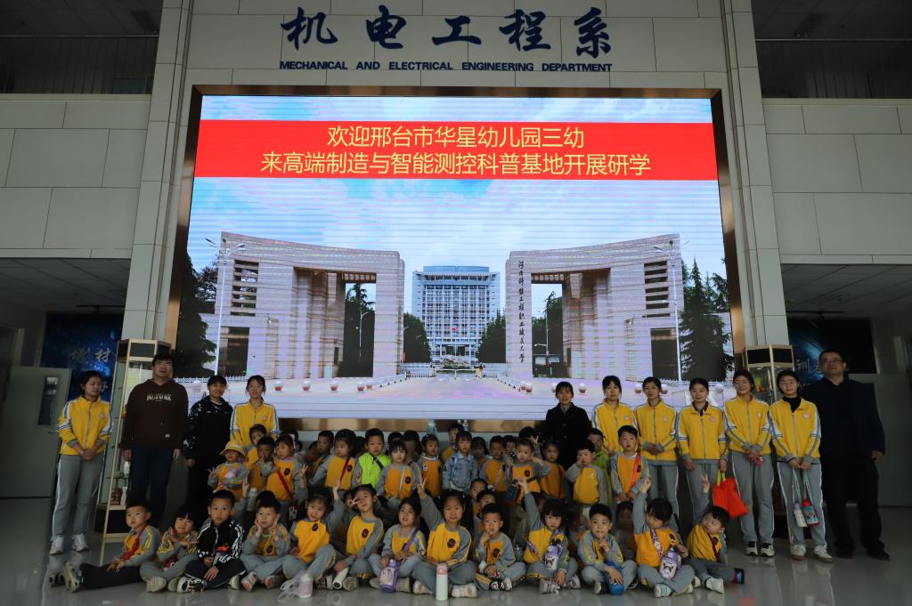 为不断深化学习贯彻习近平新时代中国特色社会主义思想主题教育,强化理论学习指导发展实践,弘扬科学家精神,激发幼儿对科学活动的兴趣,4月11日,华星幼儿园三幼的小朋友们来到beat365“河北省高端制造与智能测控科普基地”、“河北省智能装备与人工智能科普教育基地”开展研学科普活动。