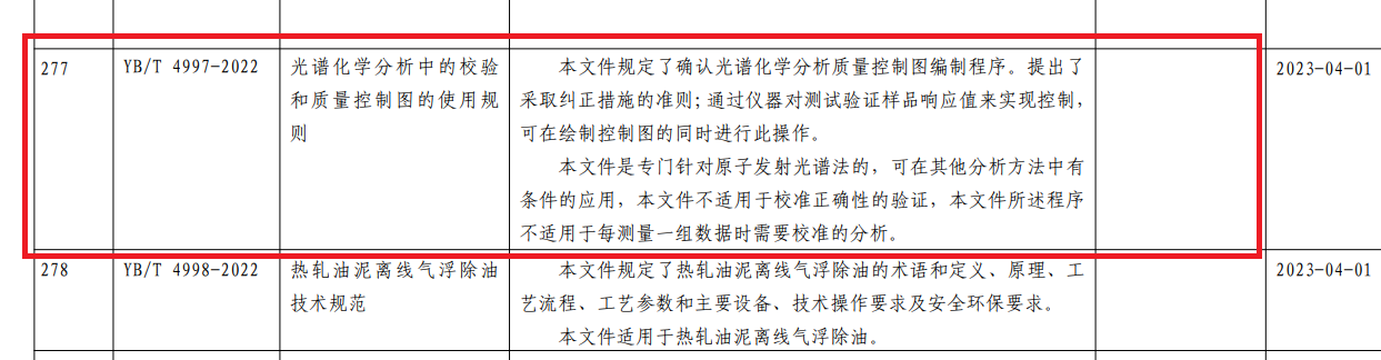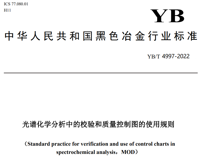 beat365参与制定的黑色冶金行业标准YB/T4997-2022《光谱化学分析中的校验和质量控制图的使用规则》于2022年10月20日经中华人民共和国工业和信息化部2022年第23号公告正式发布,将于2023年4月1日正式实施。
