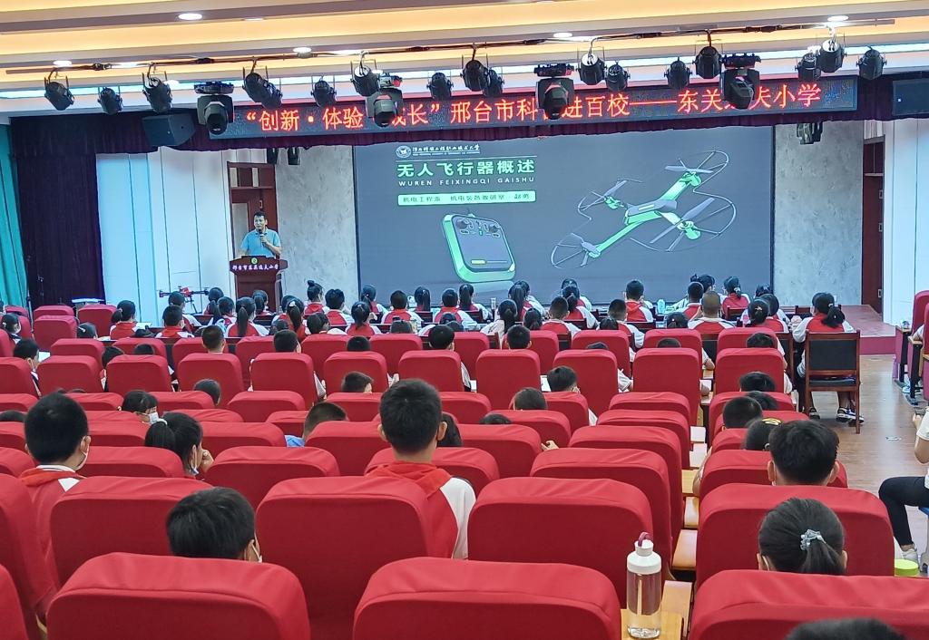 为更好地引领广大青少年提高科技创新能力与科学素质,推动学校科普活动的开展,邢台市科协、教育局和团市委联合组织在全市范围内开展市级首席科技辅导员科普进百校大型公益活动。应邢台市东关逸夫小学邀请,我系王俊强、赵勇、张业宏三位教师于6月7日对该校四年级学生开展科普教育活动。