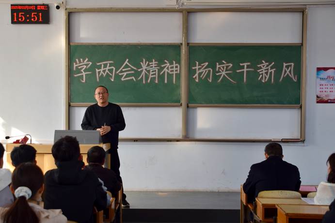学生党支部书记石旭首先介绍了本次党日活动的背景及流程,强调了本次活动的意义及重要性。全国两会胜利召开,对于贯彻落实中共中央决策部署,扎实做好2025年各项工作,高质量完成“十四五”规划目标任务,为实现“十五五”良好开局打牢基础,具有重要意义。在以习近平同志为核心的中共中央坚强领导下,全党全国各族人民振奋精神、满怀信心、鼓足干劲,必将汇聚起推进中国式现代化的磅礴力量。