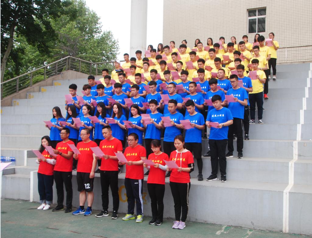 (4)为贯彻落实学院军风提振计划,提高学生中华优秀传统文化、革命文化和社会主义先进文化素养,培育家国情怀,建筑工程系利用周三下午无课时间,在我院操场经常性开展师生“三文化”朗读和长跑系列活动。