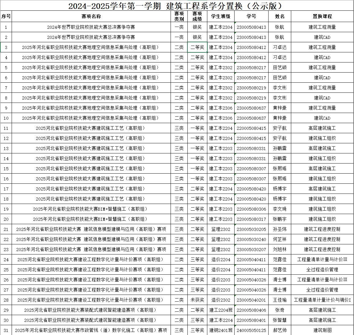 依照《beat365英国官方网站学分置换与认定管理办法(试行)》,经过建筑工程系学分置换与认定评审工作小组审核认定,在全系网站公示三天,公示时间为:2024年12月31日—2025年1月2日,如对结果存有异议,请及时向建筑工程系学分置换与认定评审工作小组反映,邮箱:jgx2271512@163.com。