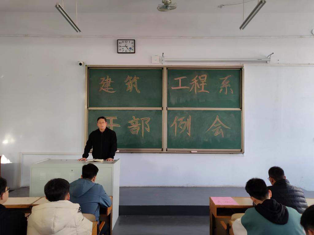 11月13日下午2:00,建筑工程系在二教1-2召开学生干部例会,刘志忠书记、卜慧楠老师、王杨老师、吴光老师出席例会,21级和22级学生干部参加例会。