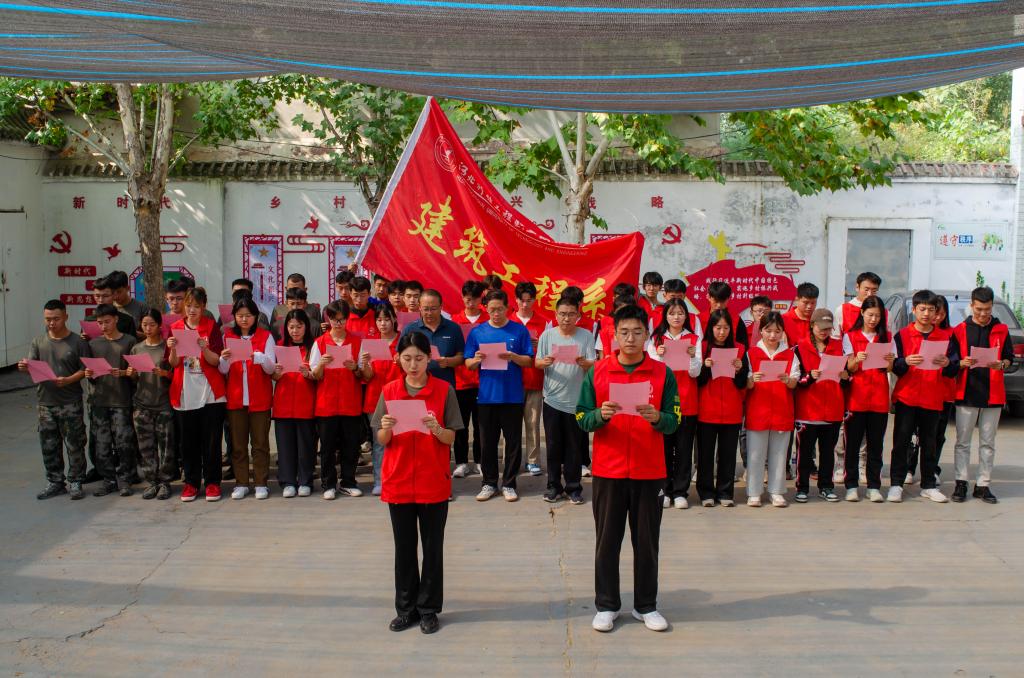 在西羊卧村文化广场,大家手持于小五老师撰写的《同学们,我们该拿什么致青春?》文稿,进行了集体诵读。同学们的诵读之声铿锵有力,传达出不负时代,不负韶华的决心。