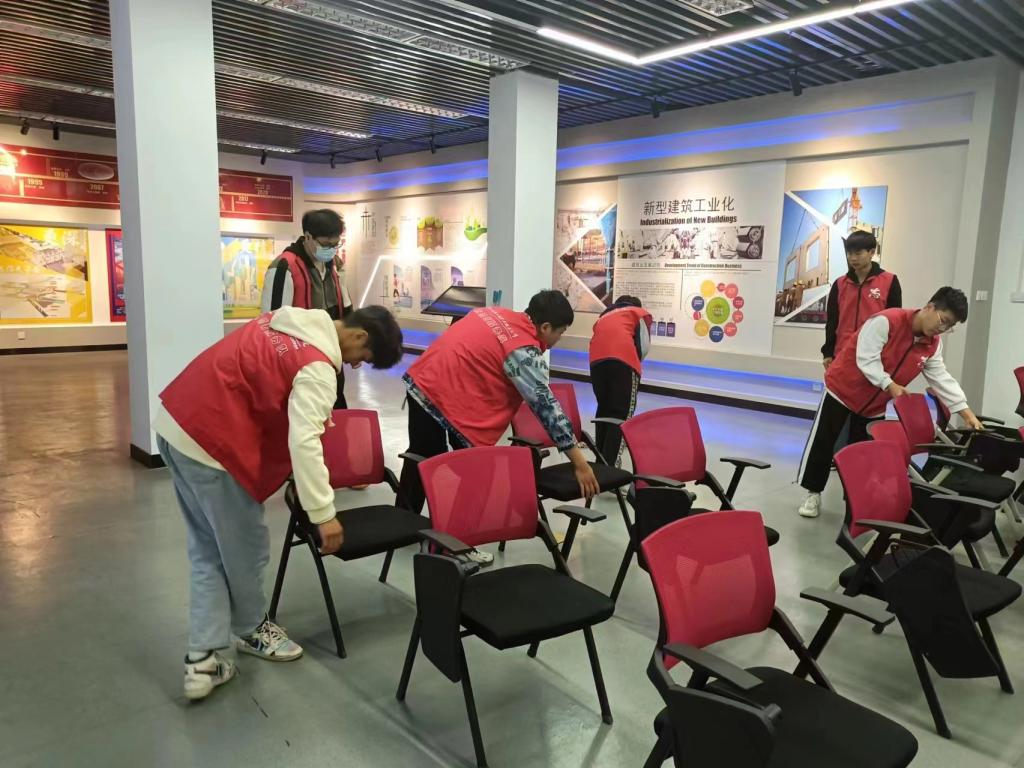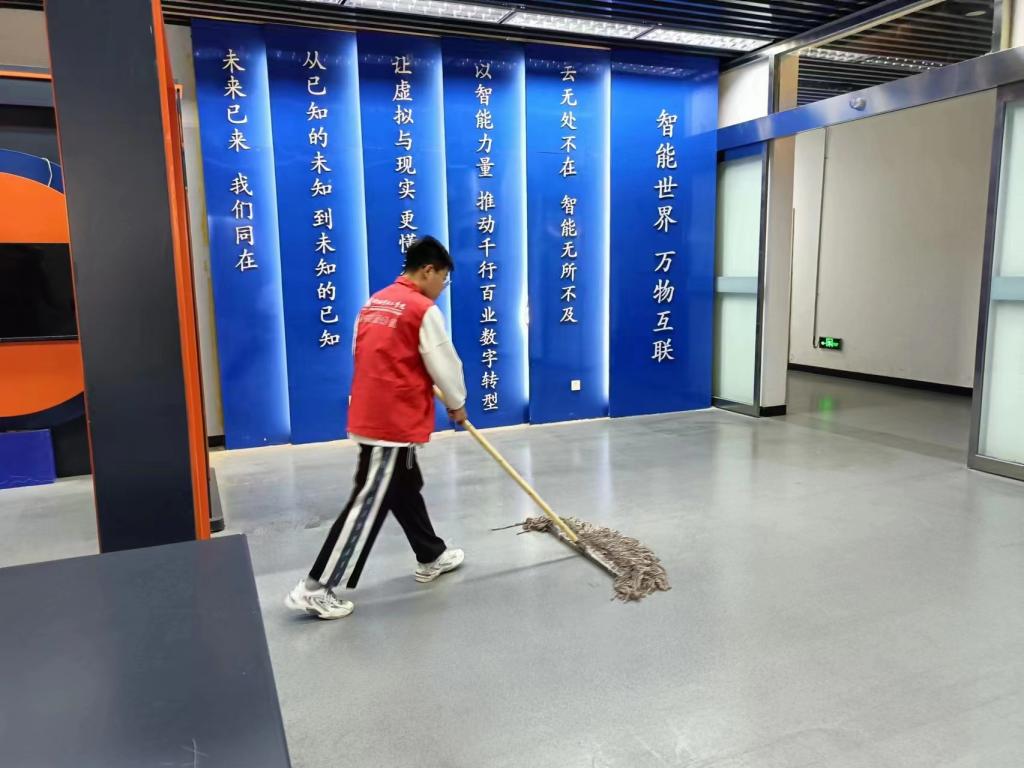 上午8时,志愿活动拉开帷幕。首先,志愿者们拿着扫帚、簸箕等工具来到二教北侧,他们有的负责把落叶扫成一堆,有的负责装运倾倒落叶,他们分工明确,配合默契,共同完成垃圾清运工作。下午2时,志愿者们对实训中心进行了清扫,同学们拿着抹布擦拭着落灰的仪器,拿着扫帚清扫着地上的垃圾,把系史馆的座椅摆放整齐。志愿者们用辛勤的付出,让实训中心焕然一新,让二教北侧的环境更加整洁美丽。
