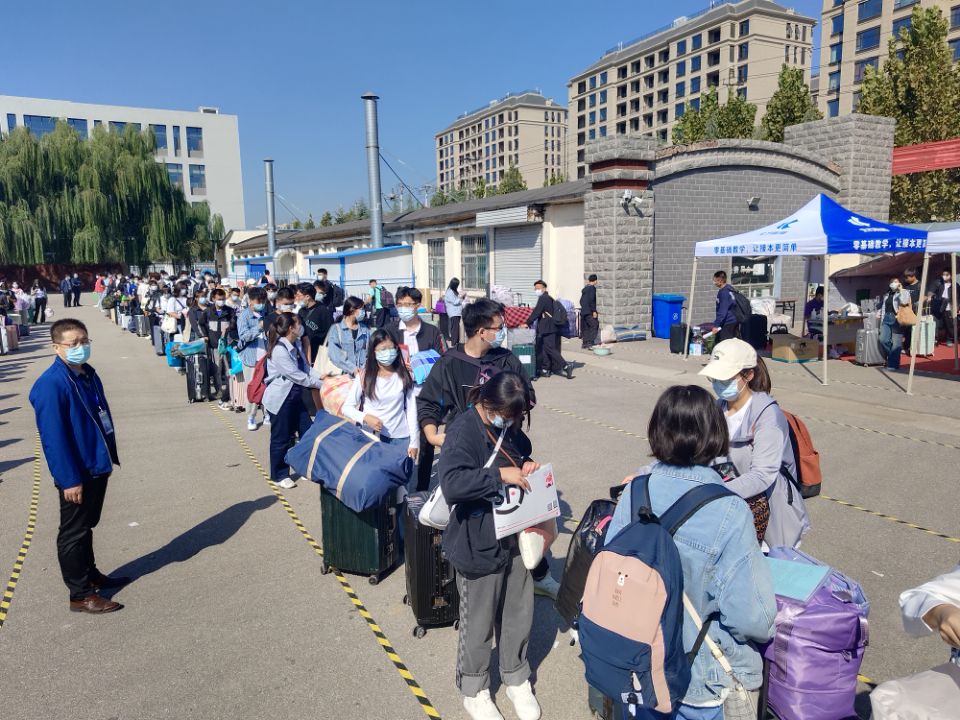 “查验防疫资料”“登记新生信息”“分配新生宿舍”“指导核酸抗原检测”“协助搬运行李”.......三轮车、板车拉着行李往返穿梭,一包包盒饭、一瓶瓶开水运进宿舍,一袋袋生活垃圾运出宿舍.......志愿者们一片奔波忙碌。“安排学生饮食”“统揽迎新大局”“进行防疫流调”“处置突发情况”“稳定学生情绪”“鼓舞学生精神”......辅导员卜慧楠、王杨、吴光等老师们与志愿者们谋在一起,想在一起,干在一起。校机关领导苗晋峰、马硕、雷前虎三位同志也深入建筑工程系协助建筑工程系迎新和宿舍秩序维护工作,他们勤勉务实的工作作风赢得建筑工程系师生的一直好拼。张广峻副主任也带领赵栋、付长春、杨文军等三位老师进校,帮助学生搬运行李。刘洋老师在新生报到和宿舍“静态管理”期间的9月25日-10月2日,日夜值守在“方舱医院”,护因疫需隔离学生心安、保他们平安。截止26日晚07:00,建筑工程系新生报到&老生返校总人数为1609人。其中22级(新生)报到669人,新生报到率已完成约88%。2021级老生返校547人,2020级老生返校393人。 除因疫暂缓入学学生未报到,本轮开学季学生报到工作圆满完成。