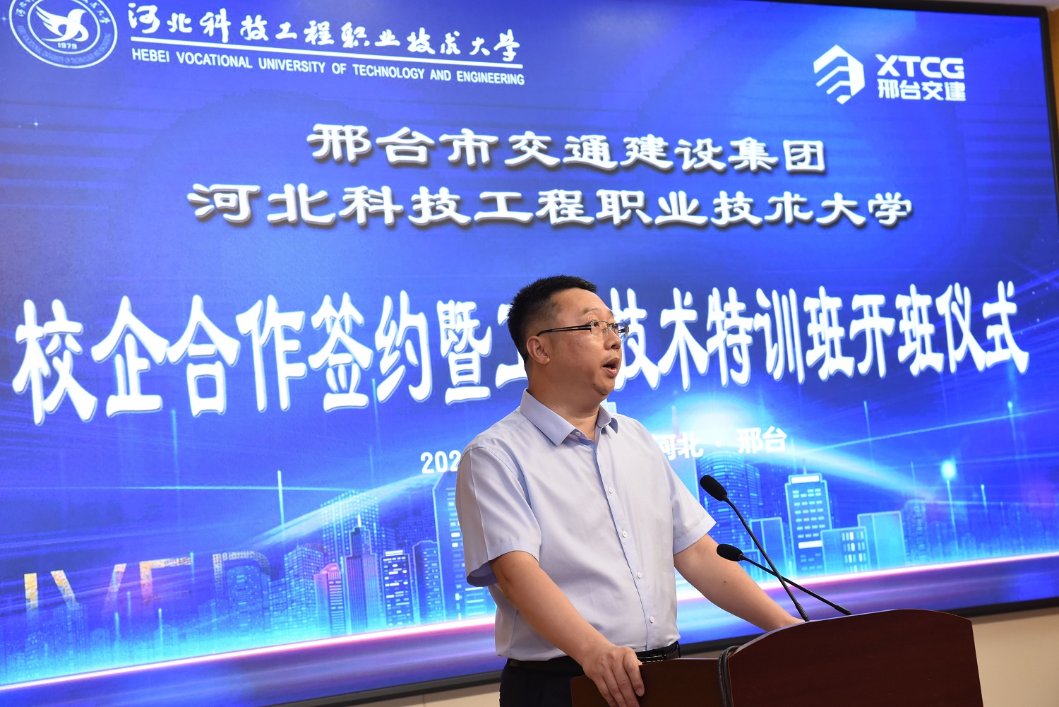 之后,马东霄校长与集团领导刘立军签署校企战略合作协议。李贤彬副校长与集团党委副书记、副总经理郑小刚签署邢台交建产业学院协议。集团马骅董事长与刘彩琴书记共同为邢台交建产业学院揭牌,与会的各位领导也一同上台见证此次揭牌仪式。