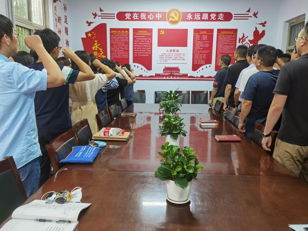 在自由发言环节,与会党员纷纷畅谈学习心得体会。学生党支部书记于小五老师说:我们要谨遵大会上习近平总书记对全体党员发出的号召,不忘初心、牢记使命,努力为党和人民争取更大光荣。教工党支部书记苑敏老师说:我们应该向参加大会的优秀代表看齐,在平凡的岗位上做出不平凡的成绩,真心对待每一位学生,齐心协力谋求建工系更好的发展。杨碧成老师也结合自己的科研工作作了发言。李宁副书记总结指出,习总书记的讲话回顾了党的百年奋斗征程,同时庄严宣告向第二个百年奋斗目标迈进,每一个建工人都要努力做好本职工作,为国家培养更多专业技能人才,为实现中华民族伟大复兴贡献自己的一份力量!最后,全体党员面向党旗郑重宣誓,重温申请入党时的思想激情和奋斗追求,回顾入党宣誓时的庄严承诺和坚定决心。