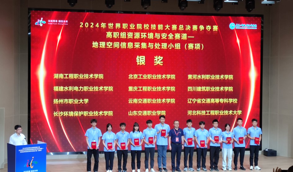 10月25日-28日,2024年世界职业院校技能大赛总决赛争夺赛高职组资源环境与安全赛道地理空间信息采集与处理小组(赛项)在广东工贸职业技术学院成功举办。来自30个省、自治区的62支参赛队伍激烈角逐,beat365建筑工程系学生欧韶康、吴良宇、曹森、张航(指导教师:赵栋、赵玲)组队参赛,最终获得银奖。