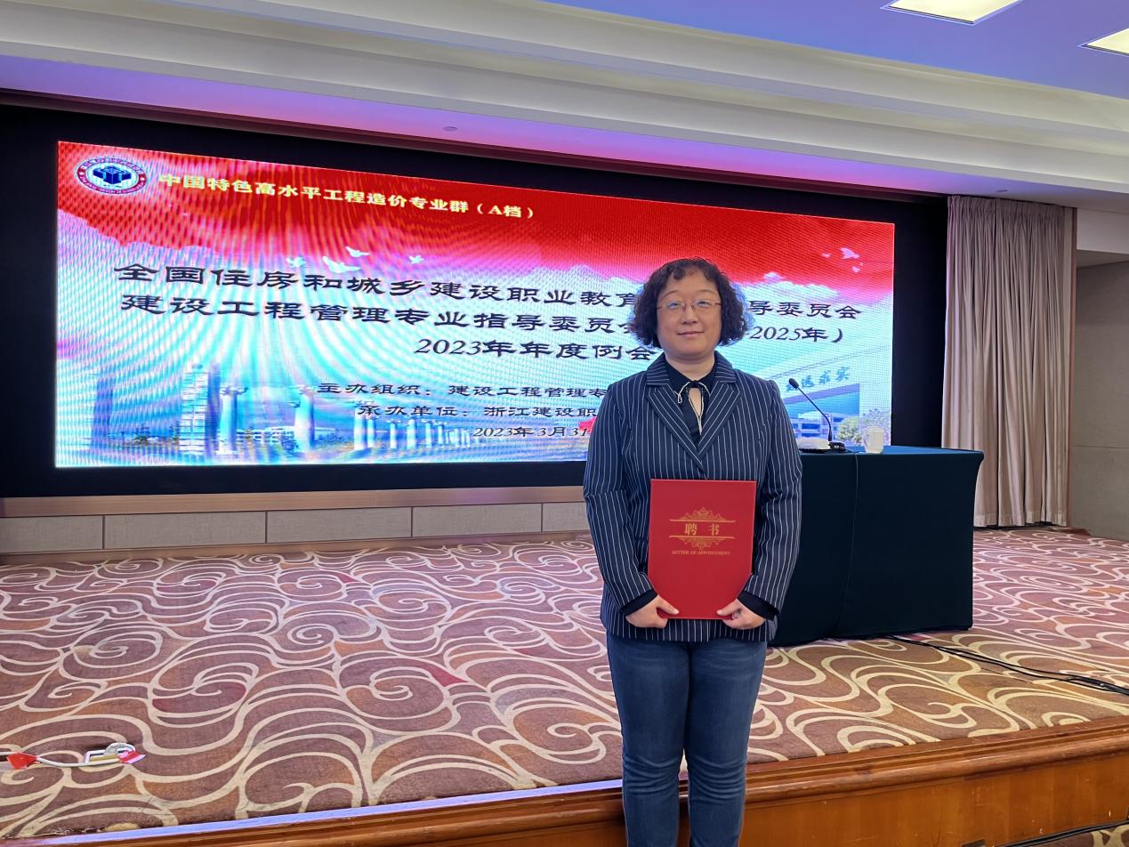 其一,向新一届住房城乡建设行指委建设工程管理专指委委员颁发聘任证书。我系苑敏老师作为河北省唯一一所职业本科院校代表委员领取了聘书。