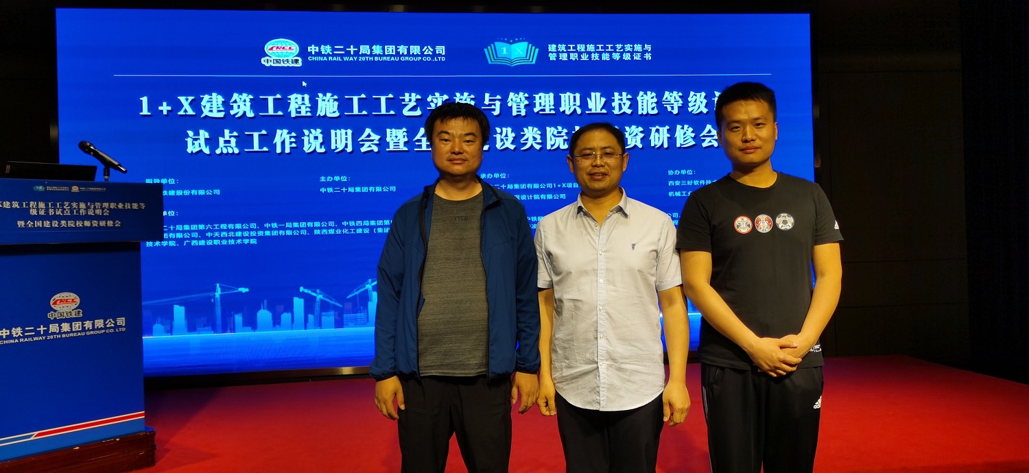 2021年5月11日-12日,由中铁二十局集团有限公司主办、中铁二十局集团有限公司1+x项目办公室、中铁建安工程设计院有限公司承办的1+x建筑工程施工工艺实施与管理职业技能等级证书试点工作说明会暨全国建设类院校师资研修会在西安召开。我系领导张广峻,教师徐涛,杨碧成参加了此次会议。我系教师团队均顺利通过考核,并获得职业技能师资培训证书。