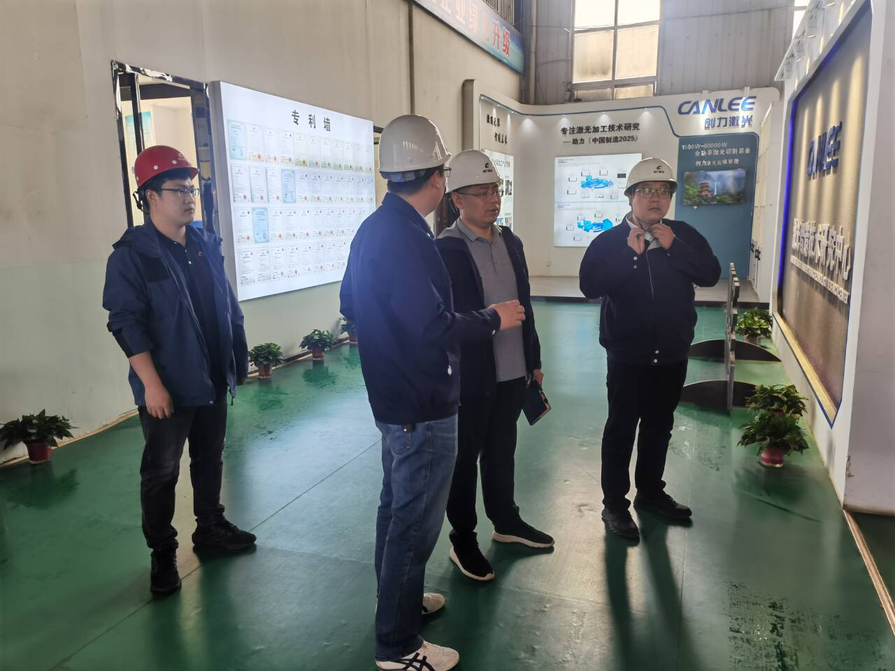 张广峻一行实地参观了河北创力机电科技有限公司生产车间,详细了解智能化钢结构生产线基本情况,以及大幅面台式激光切割机、和焊接机器人性能,并与企业负责人在技术层面进行了深入探讨。