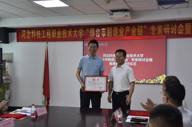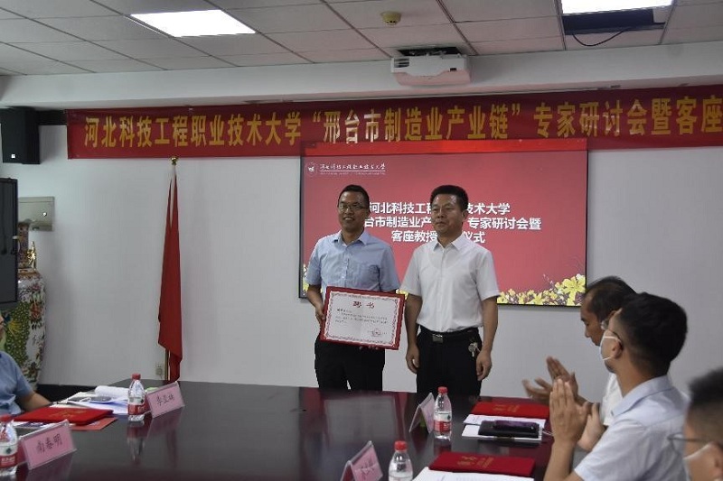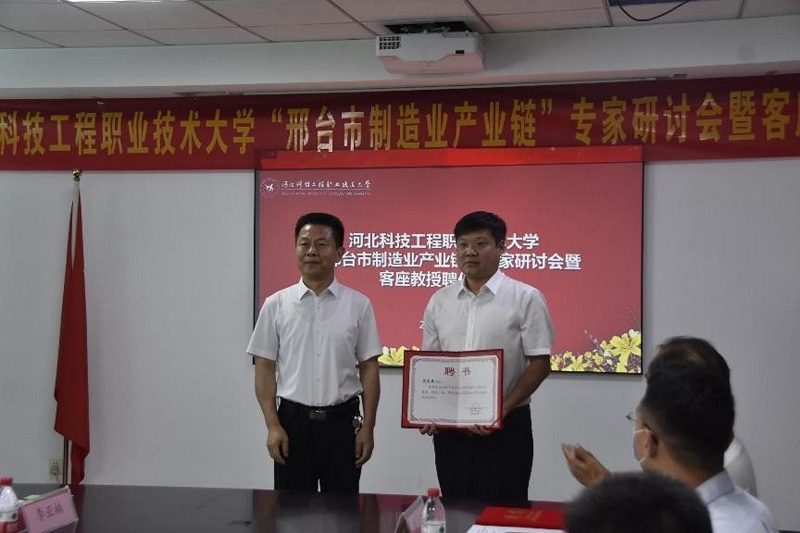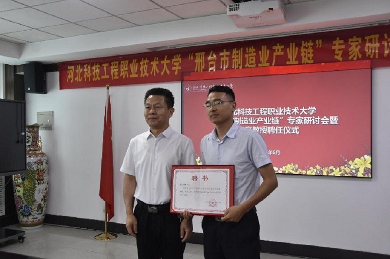 6月10日下午,beat365英国官方网站举办“邢台市制造业产业链”专家研讨会暨客座教授聘任仪式。我系邀请了中基华工程管理集团有限公司董事长袁建强、邢台路桥建设集团有限公司企业技术中心主任苏立超、邢台建工集团有限公司副总经理周彦英、邢台建工商品混凝土有限公司总经理南春明、邢台同信房地产开发有限公司副总经理信海生、力鸿检验集团有限公司刘国强先生参加会议。并被聘为beat365客座教授,校长马东霄代表学校致辞并向专家颁发客座教授聘书。
