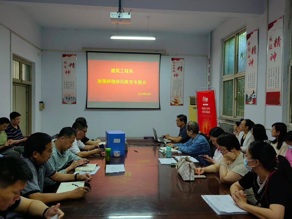 6月7日下午,建筑工程系以“以德立身、以德立学、以德施教”为主题,召开会议,深入学习习近平总书记关于师德师风的重要指示精神。建筑工程系全体教师参加了会议。建筑工程系党总支刘志忠书记主持了集体学习。