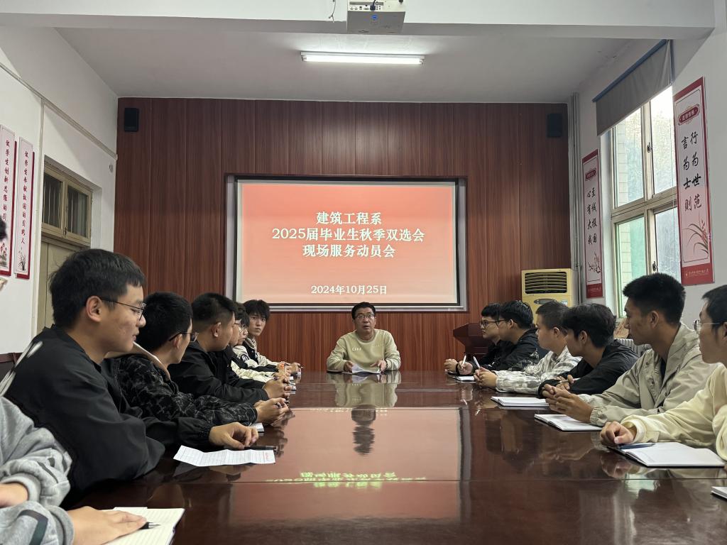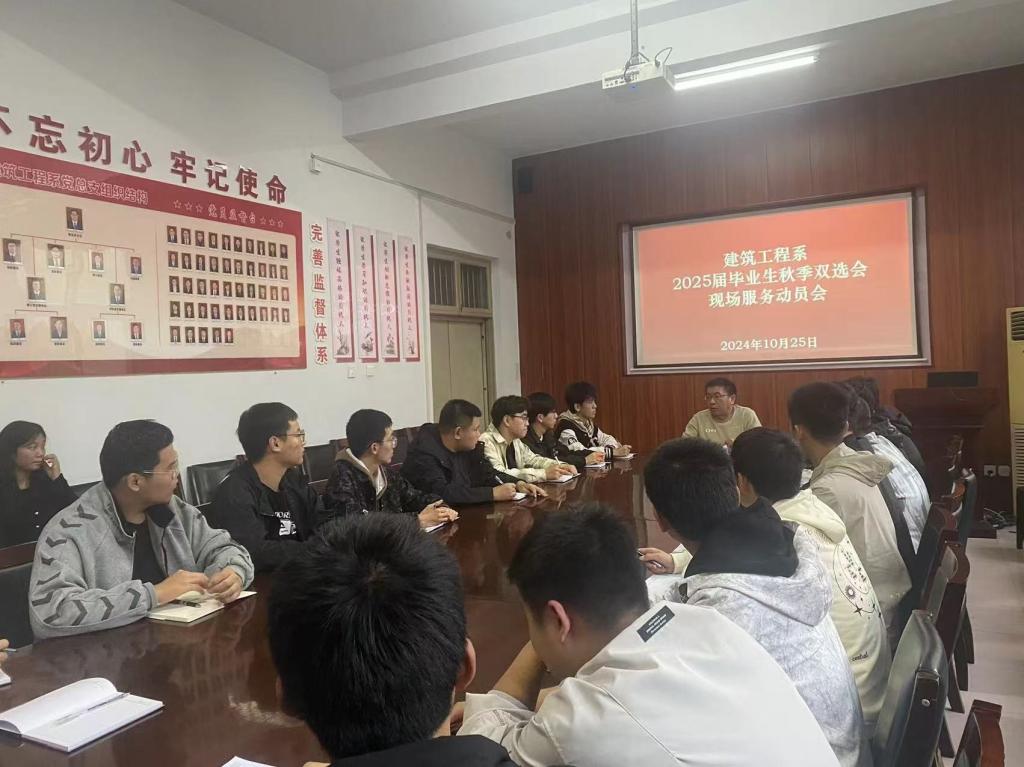 “筑梦青春,职引未来”beat3652025届毕业生秋季双选会将于明天(26日)举行。10月25日晚,受建筑工程系领导班子指导安排,就业辅导员于小五召集双选会现场服务动员会,毕业班辅导员和学生会就业部新一届学生干部参加了会议。