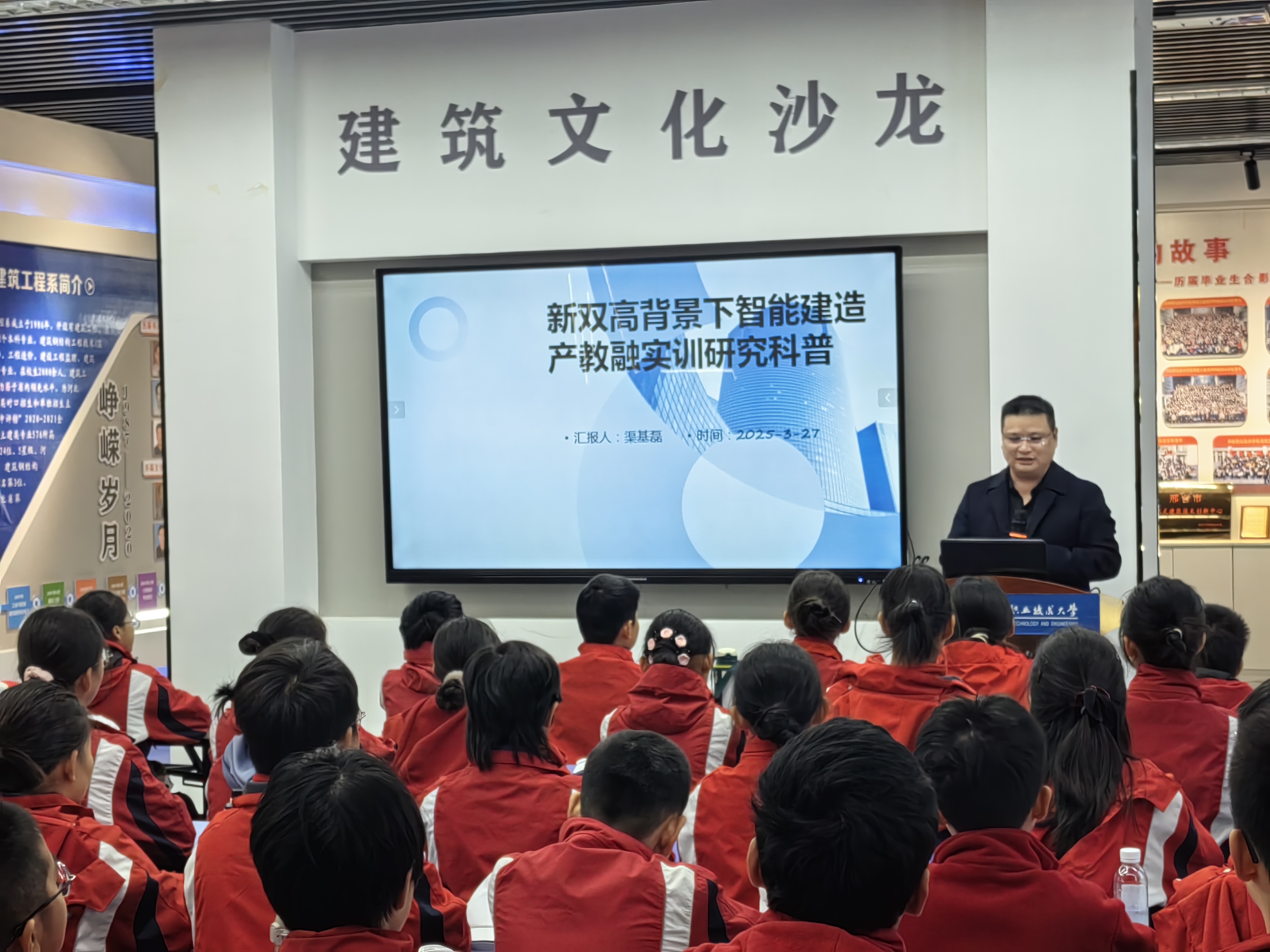 渠基磊老师为学生们讲解智能建造的基本概念、发展历程以及在现代建筑中的应用。通过动画、模型与案例展示,了解智能建造如何赋能现代城市建设,帮助大家更好地理解这一前沿领域。