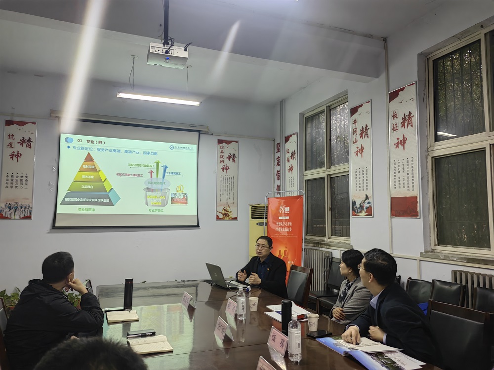 4月21日,淄博职业学院建筑工程学院院长张骞、副院长王磊磊带领建工教研部、实训部负责人一行4人前来beat365建筑工程系进行调研交流。建筑工程书记刘志忠和副主任张广峻及相关专业负责人热情接待来访一行。双方围绕职业本科建设、师资培养、实训基地建设等方面开展深入交流。