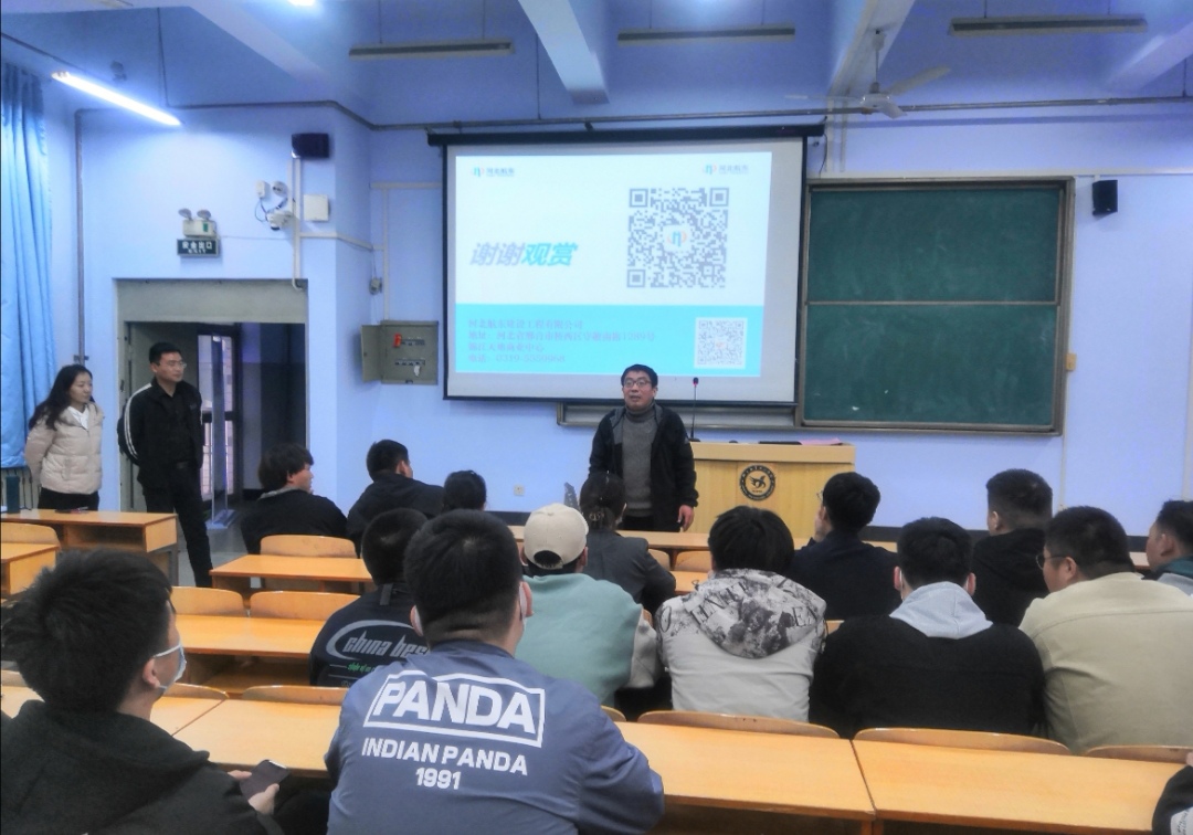 首先是由河北航东建设工程(路桥)有限公司企业负责人为同学们介绍了公司的发展历程以及公司对未来发展的战略规划。随后讲解了企业的规章制度、福利待遇、现有公司产业结构、组织框架等几个方面做了简单介绍、并对同学们提出的问题作出了解答,现场掌声不断,多名毕业生与招聘企业达成就业意向。
